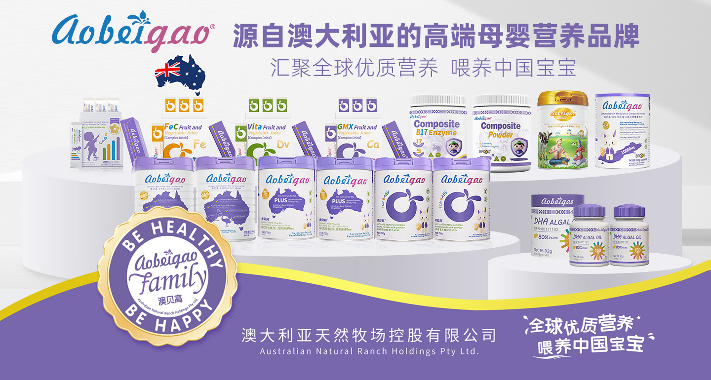 Aobeigao澳貝高是專注于嬰童營養(yǎng)健康的品牌,隸屬于澳大利亞天然牧場控股有限公司旗下的高端兒童營養(yǎng)食品品牌,由其子公司中童營養(yǎng)品(廣州)有限公司全權運營。其研發(fā)團隊與國內(nèi)外專業(yè)營養(yǎng)研究機構緊密合作,結合中國嬰童的綜合體質(zhì),強調(diào)配方基于《中國居民膳食指南》嬰童要求,致力于研發(fā)更適合中國嬰童的營養(yǎng)食品。