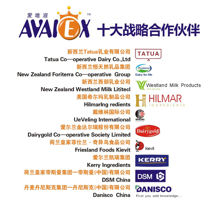AVAIEX(愛唯滋)作為一家新興外商獨(dú)資企業(yè),在充分借鑒已有國(guó)際乳制品巨頭在中國(guó)發(fā)展的基礎(chǔ)上,以全球乳業(yè)資源整合的方式開創(chuàng)一個(gè)全新的商業(yè)模式。將世界頂級(jí)奶源和世界頂級(jí)配料按照適合中國(guó)寶寶的配方比例在中國(guó)大陸GMP十萬級(jí)工廠完成最后的封裝,為中國(guó)寶寶提供安全的、優(yōu)質(zhì)的、高端的和更及時(shí)的產(chǎn)品和服務(wù),將國(guó)際乳業(yè)巨頭和科研機(jī)構(gòu)的頂尖產(chǎn)品和技術(shù)為中國(guó)寶寶服務(wù),以實(shí)現(xiàn)全球最優(yōu)秀嬰幼兒產(chǎn)業(yè)鏈資源與中國(guó)市場(chǎng)的對(duì)接。