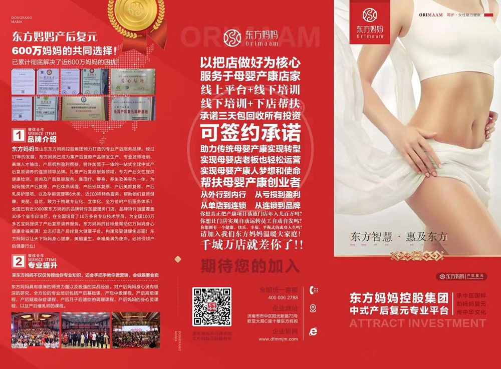 品牌名稱:東方媽媽 主營產(chǎn)品:東方媽媽產(chǎn)后復(fù)元中心 品牌特色:正本清源 蝶變新生