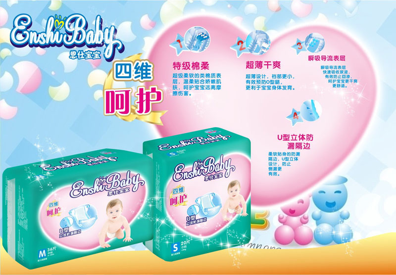 恩仕寶寶是深圳恩仕貿(mào)易有限公司旗下主打嬰兒紙尿褲紙尿片系列品牌,產(chǎn)品特級棉柔、超薄透氣、干爽鎖水,最大優(yōu)點是不會紅屁股,是嬰兒紙尿片的理想選擇,F(xiàn)在恩仕寶寶火爆招商,歡迎來電來函咨詢洽談。