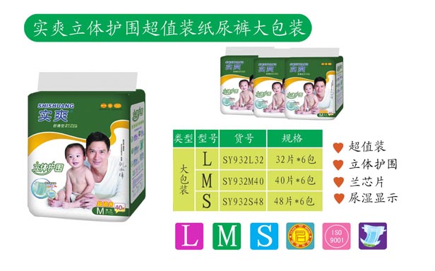 品牌名稱:實爽 主營產(chǎn)品:實爽嬰幼兒紙尿褲招商 品牌特色:衛(wèi)生舒適 超薄鎖水