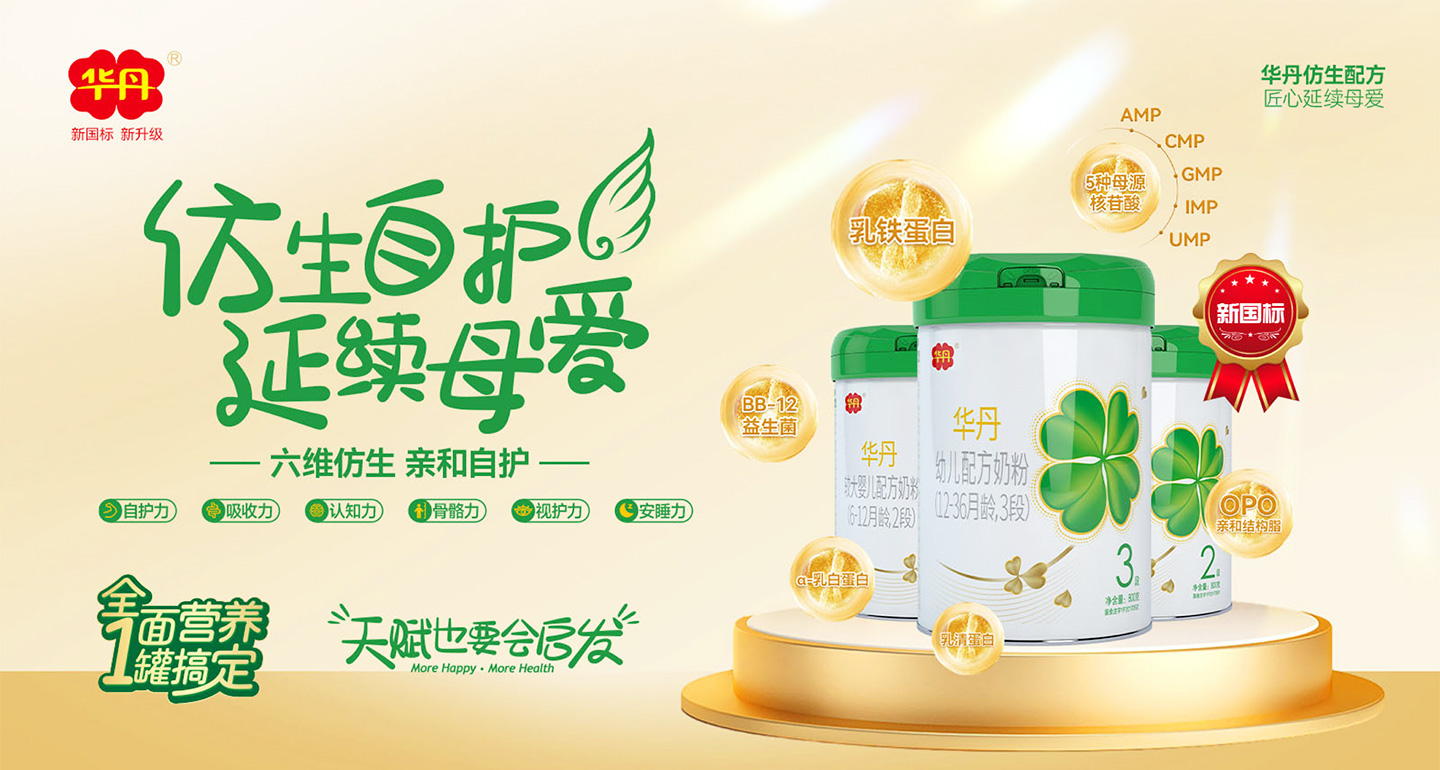 品牌名稱:華丹 主營產品:新國標嬰配粉,兒童奶粉,孕產婦奶粉,中老年奶粉 品牌特色:好奶源 好工藝 好營養(yǎng)