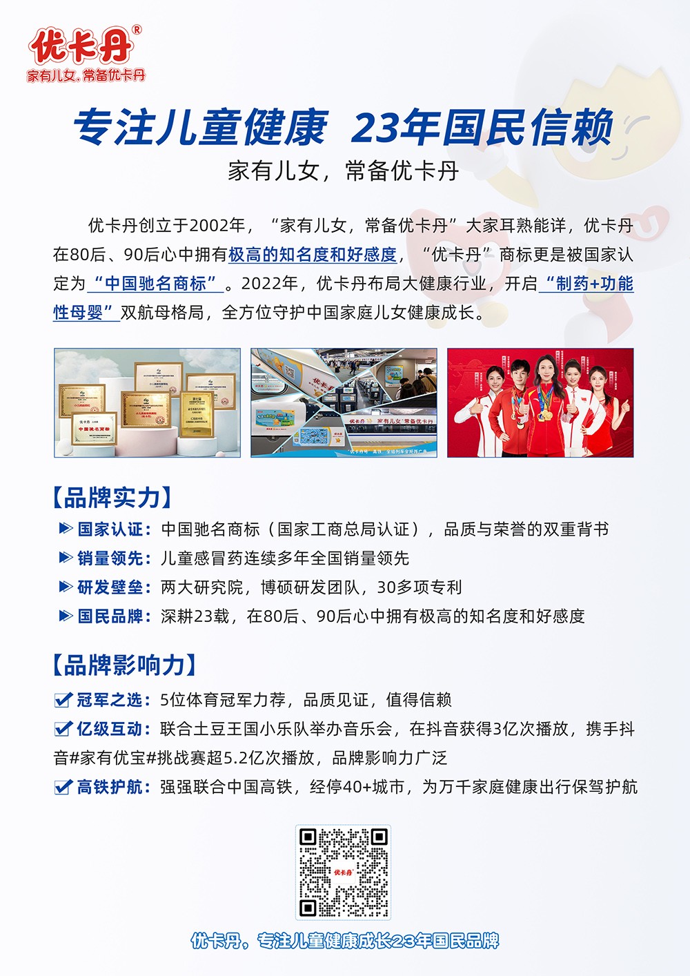 優(yōu)卡丹,專業(yè)守護(hù)兒童健康成長(zhǎng) 23 年!