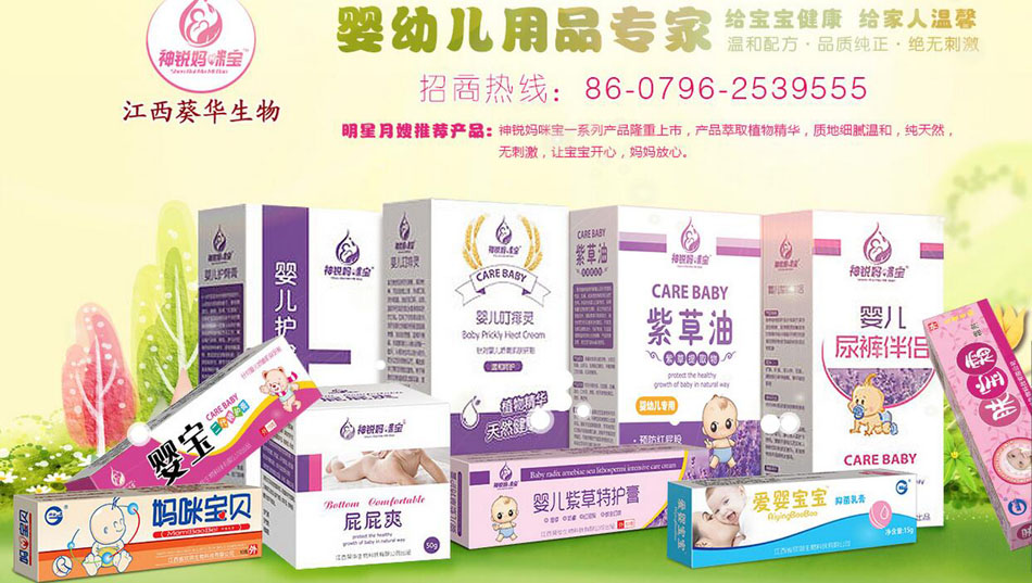 公司擁有膏劑、貼劑、外用噴劑等系列產(chǎn)品。最新推出神銳媽咪寶嬰童護(hù)膚產(chǎn)品:紫草油,嬰兒紫草特護(hù)膏,屁屁爽,嬰兒叮痱靈,嬰兒護(hù)臀膏等產(chǎn)品面向全國招商國.神銳媽咪寶嬰兒護(hù)膚產(chǎn)品精選純天然無污染野生藥材,采用先進(jìn)納米提取技術(shù),結(jié)合百年民間傳統(tǒng)工藝 精心研制而成。誠心的制藥人張開熱情的懷抱,熱忱歡迎海內(nèi)外有識之士加盟合作,為人類的健康事業(yè)攜手共創(chuàng)美好的明天!