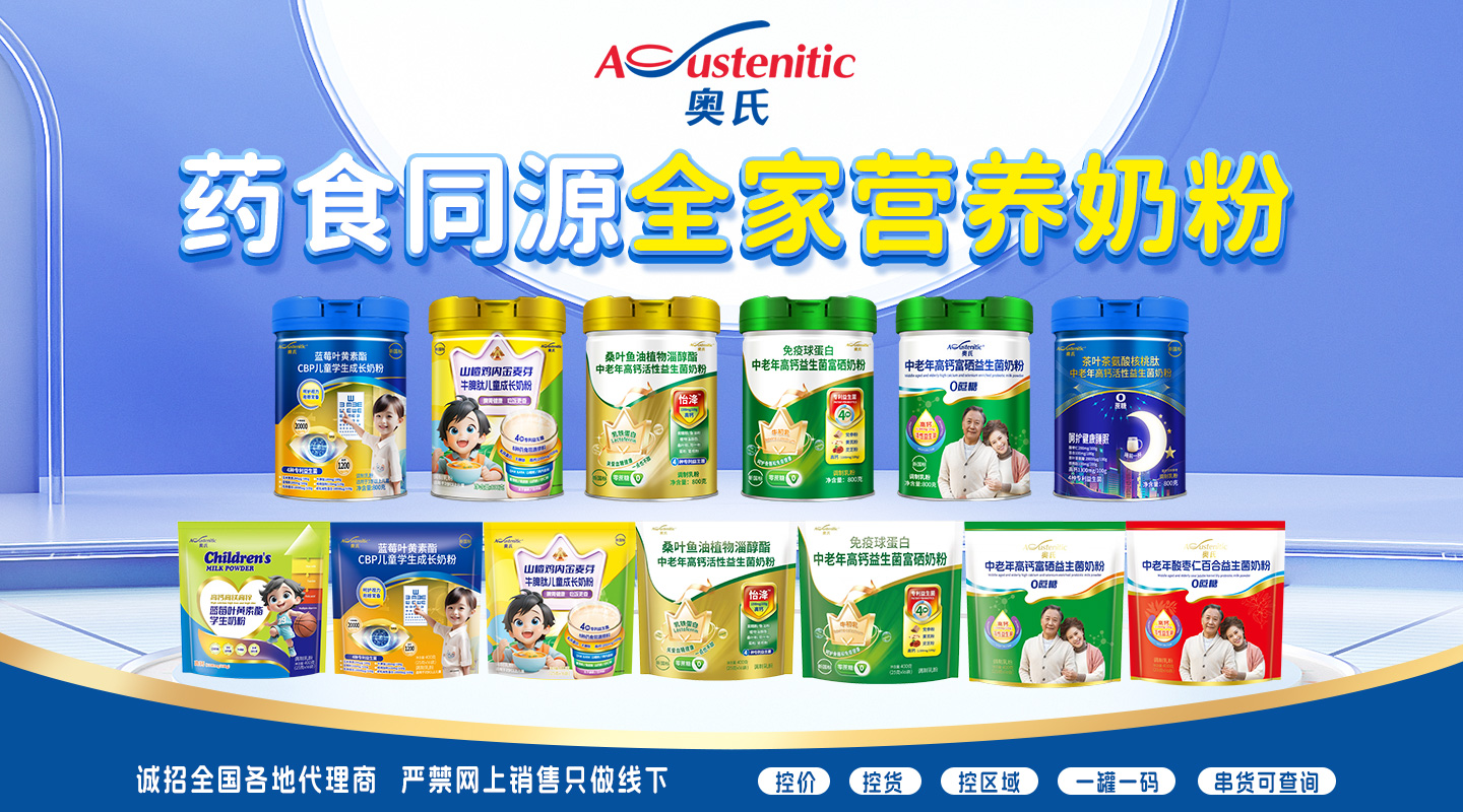 奧氏(Austenitic ) 是專注于藥食同源營養(yǎng)健康的奶粉品牌,品牌以“科學營養(yǎng)·健康齡距離”為核心理念,結合現(xiàn)代營養(yǎng)科技,打造符合健康需求的高端奶粉產(chǎn)品。