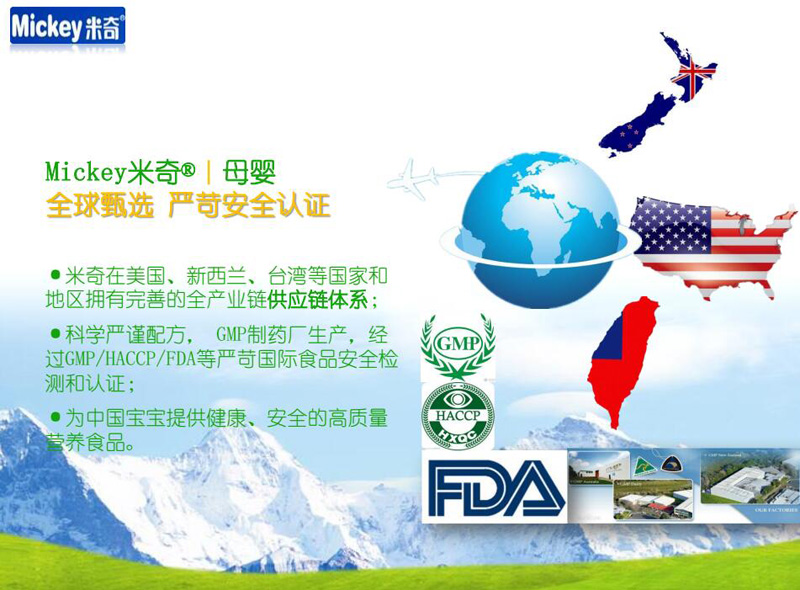 米奇·母嬰專注孕嬰營養(yǎng)品、嬰幼兒輔食/奶粉等孕嬰食品和嬰幼兒用品等系列母嬰產(chǎn)品的研發(fā)、生產(chǎn)和銷售,以全球化全產(chǎn)業(yè)鏈、互生再生共生構(gòu)筑國際生態(tài)體系,致力于為母嬰提供健康、安全的營養(yǎng)食品和用品,在美國、新西蘭、臺灣等國家和地區(qū)同步上市。