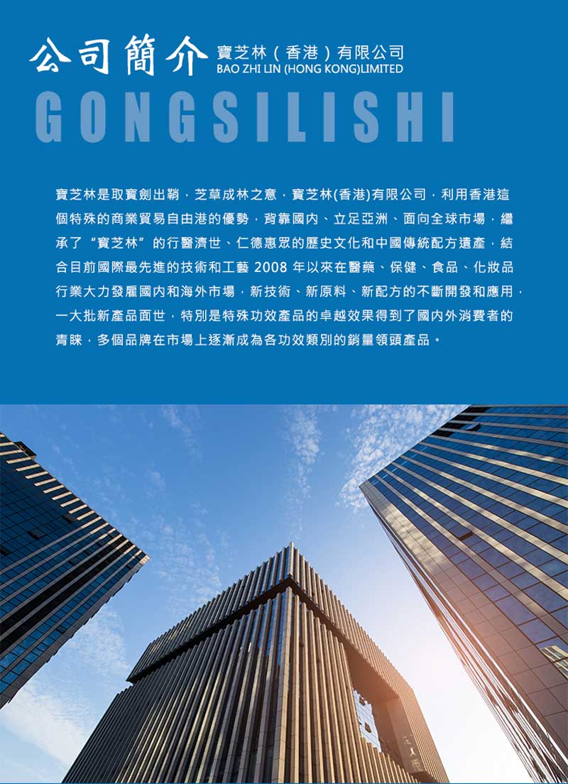 寶芝林是取寶劍出鞘.芝草成林之意。寶芝林(香港)有限公司,利用香港特殊貿(mào)易自由港的優(yōu)勢(shì),背靠國內(nèi)、立足亞洲、面向全球市場(chǎng),繼成了“寶芝林”的行醫(yī)濟(jì)世、仁德惠眾的歷史文化和中國的傳統(tǒng)配方遺產(chǎn),結(jié)合目前國際最先進(jìn)的技術(shù)和工藝,2008年以來在醫(yī)藥、保健、食品、化妝品行業(yè)大力發(fā)展國內(nèi)和海外市場(chǎng),新技術(shù)、新原料、新配方的開發(fā)和應(yīng)用,一大批新產(chǎn)品面世,特別是特殊功效產(chǎn)品卓越效果,得到了國內(nèi)外消費(fèi)者的青睞,多個(gè)品牌在市場(chǎng)上逐漸成為各功效類別的銷量領(lǐng)頭產(chǎn)品。