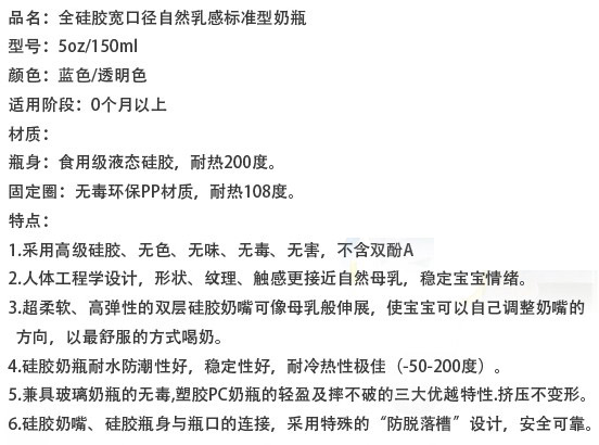 硅膠很柔軟,不用奶瓶刷用手也可以刷到奶瓶的各個(gè)角落,容易清洗。寶寶吸奶時(shí),奶瓶會(huì)隨著奶水的減少而自動(dòng)收縮,始終保持著瓶身內(nèi)外氣壓一致,避免寶寶吸入過多的空氣而導(dǎo)致嗆奶、腹脹等不適,有效解決喂奶時(shí)脹氣的煩惱,從而達(dá)到自動(dòng)呼吸的功能。