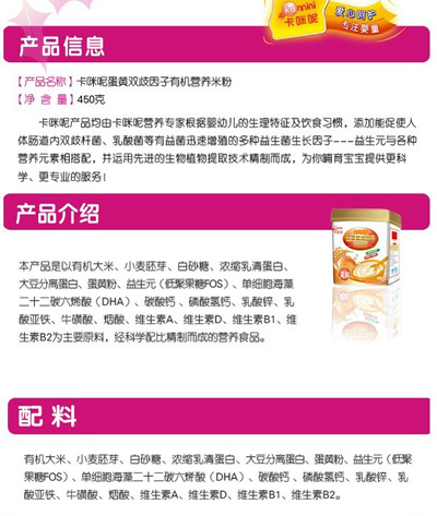 卡咪呢金胚麥芽蛋黃雙歧因子有機營養(yǎng)米粉