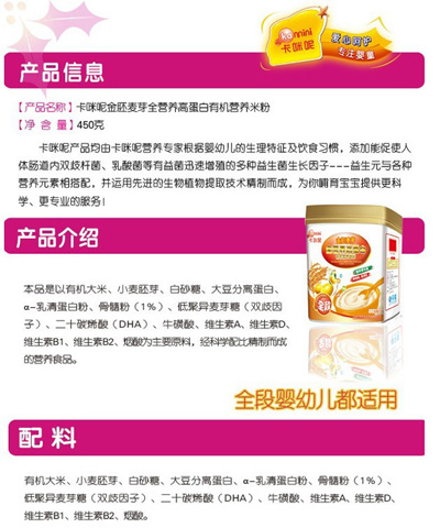 卡咪呢金胚麥芽全營(yíng)養(yǎng)高蛋白有機(jī)營(yíng)養(yǎng)米粉