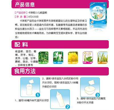 卡咪呢有機(jī)米粉系列是專為中國(guó)寶寶設(shè)計(jì)的營(yíng)養(yǎng)輔食,選用有機(jī)大米,科學(xué)搭配維生素AD等維生素,還特別添加牛磺酸、DHA、AA等有助智力發(fā)育的營(yíng)養(yǎng)成分,富含15種營(yíng)養(yǎng)素。現(xiàn)上?ㄟ淠啬笅胗闷酚邢薰久嫦蛉珖(guó)空白市場(chǎng)區(qū)域誠(chéng)招卡咪呢有機(jī)米粉代理商。