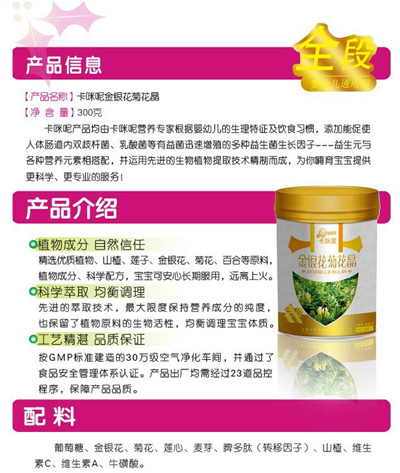 上海卡咪呢母嬰用品有限公司主營母嬰營養(yǎng)保健食品,產(chǎn)品原料來自有機(jī)農(nóng)業(yè)生產(chǎn)體系或野生天然產(chǎn)品,通過國家相關(guān)有機(jī)食品認(rèn)證機(jī)構(gòu)的嚴(yán)格檢測認(rèn)證,現(xiàn)面向全國空白市場區(qū)域誠招代理商加盟。