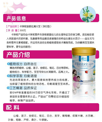 卡咪呢小兒板藍(lán)根顆粒是上?ㄟ淠啬笅胗闷酚邢薰酒煜庐a(chǎn)品,專為嬰幼兒設(shè)計,專業(yè)、安全,幫助寶寶可以預(yù)防感冒抵抗病毒,是廣大父母育兒的好幫手。卡咪呢小兒板藍(lán)根顆粒不含任何色素、防腐劑,安全放心。