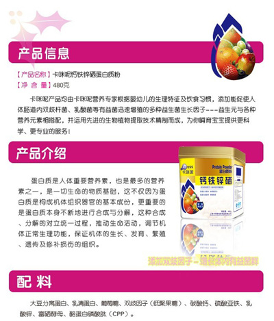 蛋白質(zhì)是人體重要營養(yǎng)素,也是多的營養(yǎng)素之一,是一切生命的物質(zhì)基礎(chǔ),可以保證機體的生長、發(fā)育、繁殖、遺傳及修補損傷的組織。上?ㄟ淠啬笅胗闷酚邢薰臼菍I(yè)的母嬰營養(yǎng)品企業(yè),針對中國孕嬰童體質(zhì)推出了卡咪呢蛋白質(zhì)粉系列產(chǎn)品,現(xiàn)面向全國招商。