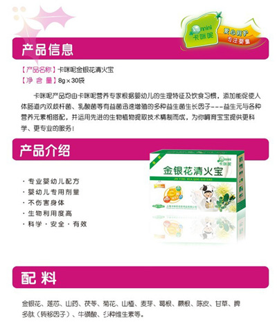 卡咪呢小兒板藍根顆粒是上?ㄟ淠啬笅胗闷酚邢薰酒煜庐a(chǎn)品,專為嬰幼兒設(shè)計,專業(yè)、安全,幫助寶寶可以預(yù)防感冒抵抗病毒,是廣大父母育兒的好幫手。卡咪呢小兒板藍根顆粒不含任何色素、防腐劑,安全放心。