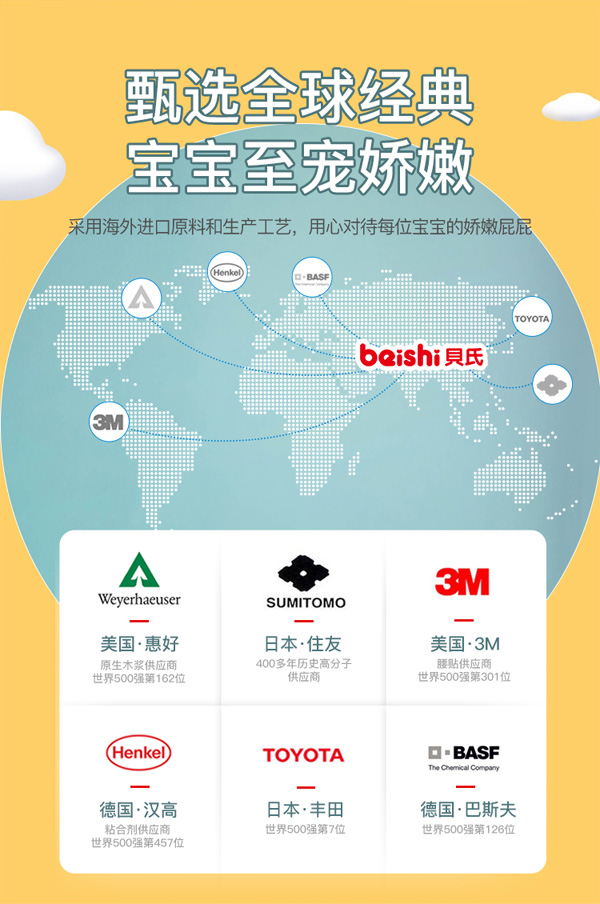 采用海外進(jìn)口原料和生產(chǎn)工藝,用心對(duì)待每位寶寶的嬌嫩屁屁