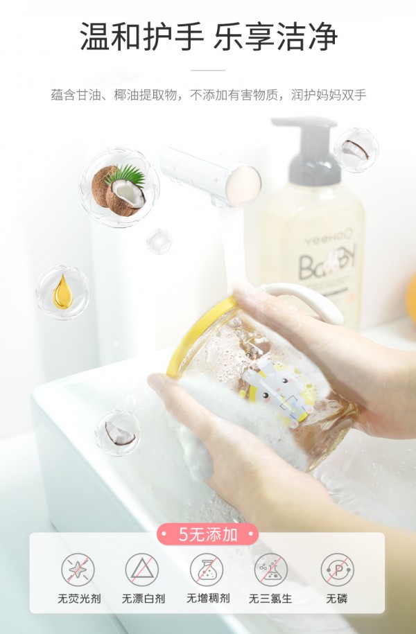 英氏嬰兒奶瓶果蔬酵素清潔泡沫蘊(yùn)含甘油、椰油等天然植物提取物,不添加熒光劑、增白劑、增稠劑、三氯生、磷等有害物質(zhì),溫和清洗更護(hù)手,悉心潤(rùn)護(hù)媽媽雙手,讓媽媽樂(lè)享潔凈。