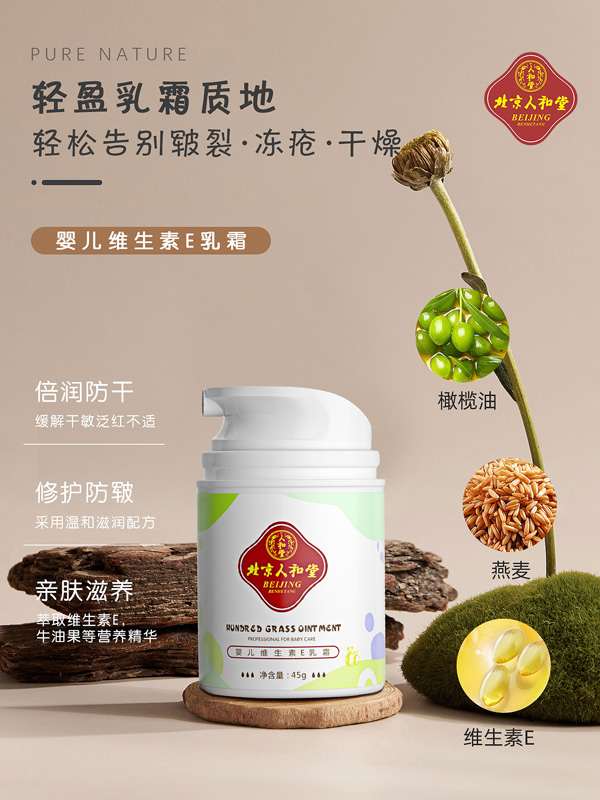 北京人和堂嬰兒維生素E乳霜,一款根據(jù)嬰幼兒嬌嫩肌膚特點(diǎn)所研發(fā)設(shè)計(jì)的專業(yè)護(hù)膚產(chǎn)品,精選多種天然植物為原料,萃取其精華成份,源頭把控,安全健康,富含維生素E,科學(xué)研究配方,溫和呵護(hù)嬌嫩肌,不含激素,滋潤保濕,針對(duì)寶寶常見的干燥、脫皮、皸裂等皮膚問題有很好的舒緩作用。