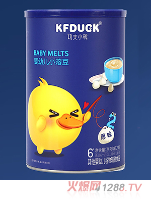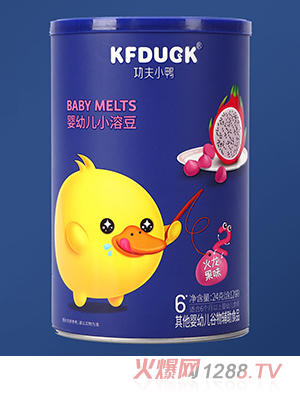 功夫小鴨嬰幼兒小溶豆系列,有獼猴桃味、香蕉胡蘿卜味、火龍果味、原味等,共四種口味,甄選食材,精湛制作,營養(yǎng)高度保留,入口即溶,好吃不膩。
