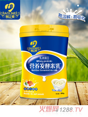 1.酵立美發(fā)酵米乳是以大米、小米等五谷和脫脂乳粉為主要原料,以腸胃道營(yíng)養(yǎng)益生菌(嗜酸乳桿菌或動(dòng)物雙歧桿菌)作發(fā)酵劑,經(jīng)烘烤、糊化、酶解、調(diào)配、菌解等工藝,制成口感細(xì)膩,質(zhì)地均勻,有大米或相應(yīng)五谷的焦奶香味,不添加食用色素和防腐劑的發(fā)酵米乳。