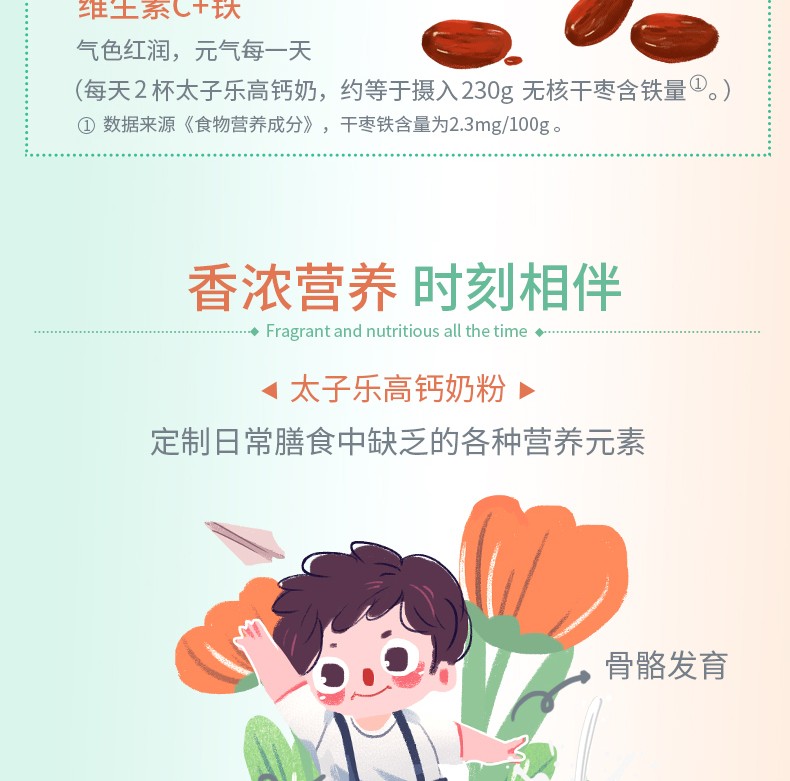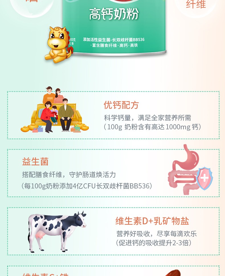太子樂高鈣奶粉定制日常膳食中缺乏的各種營(yíng)養(yǎng)元素,長(zhǎng)雙歧桿菌BB536、鈣、硒、膳食纖維等,科學(xué)配比鈣含量,滿足全家營(yíng)養(yǎng)所需。