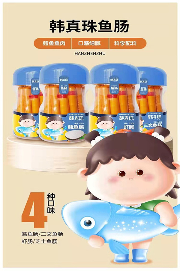 有鱈魚(yú)腸 三文魚(yú)腸 蝦腸 芝士魚(yú)腸四款單品,甄選優(yōu)質(zhì)鱈魚(yú)肉、三文魚(yú)肉、蝦肉等,采用先進(jìn)工藝制作,科學(xué)配比,營(yíng)養(yǎng)均衡。