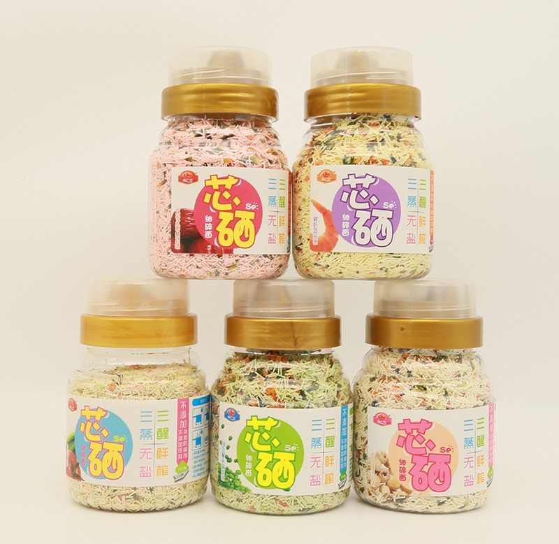 康廣利芯硒細碎面,采用麥芯粉、鮮榨蔬菜汁等優(yōu)質(zhì)食材制作,經(jīng)獨特用心調(diào)制,淡淡的雜糧和蔬菜香味進入面條中,綠豆薏米菠菜味、五谷紅棗山藥味、鮮蝦海苔味、百合蓮子口味、多彩口味,多種不同口味,讓寶寶的味蕾開始旅行。三醒三蒸,無鹽鮮榨,不含色素、防腐劑、增白劑,健康安全。易煮不渾湯,造型獨特,面體爽滑,口感美味。罐裝設(shè)計,易于存儲,干凈衛(wèi)生,食用方便。