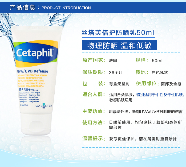絲塔芙倍護防曬乳,全面抵御紫外線,防水防汗,溫和親膚,乳液質(zhì)地,水潤清透,不泛白不油膩,滋潤度特別好,成分安全,不容易刺激皮膚,過敏的可能性也比較小,特別適合嬰幼兒使用。SPF30+,PA+++,防曬防黑,無論是出游還是日常使用都特別適合,防水效果特別好,可以減少補涂的時間,能夠提供能長久的防曬時間,幫助滋潤修護受損肌膚,讓寶寶臉蛋細(xì)膩有光澤,拒絕曬后不適,親膚易水洗,讓寶寶安然度夏。