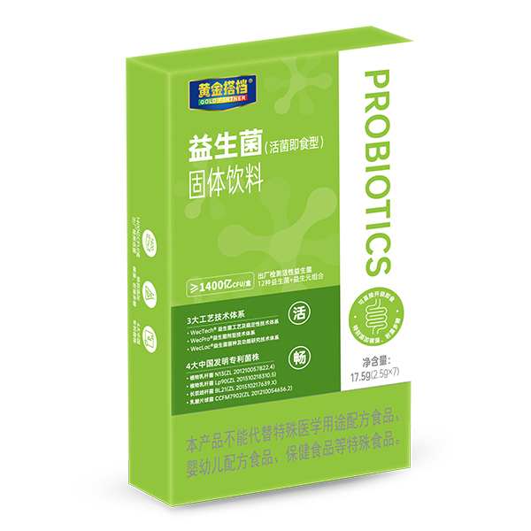 黃金搭檔益生菌,12種益生菌+益生元組合,活菌即食型,給力護腸道!富含植物乳桿菌N13、植物乳桿菌Lp90、長雙歧桿菌BL21以及乳酸片球菌CCFM7902 四大中國發(fā)明專利菌株!特別添加裸藻、巖藻多糖,配比科學(xué)!出廠檢測活性益生菌每盒≥1400億CFU,超高活性,更易消化吸收!三大工藝技術(shù)體系,為品質(zhì)護航,給力助陣全家營養(yǎng)時代!