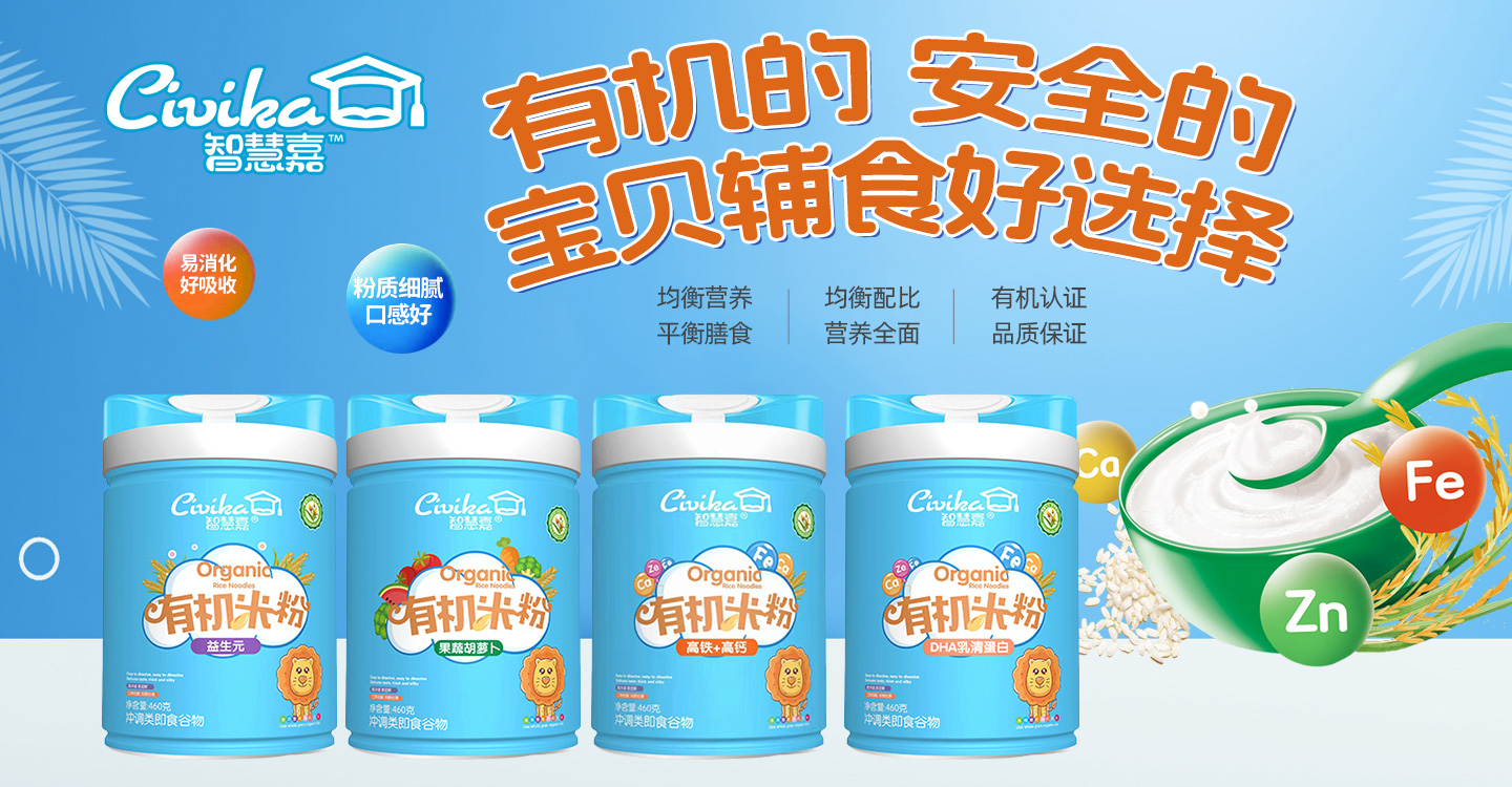 智慧嘉,是江西齊慧樂實(shí)業(yè)有限公司旗下品牌,產(chǎn)品主要有有機(jī)米粉、水果奶米粉、益生菌米乳、小米米粉等輔食產(chǎn)品,蛋白質(zhì)粉、凝膠糖果、清清寶、葡萄糖、營(yíng)養(yǎng)素、營(yíng)養(yǎng)包等營(yíng)養(yǎng)食品產(chǎn)品,滿足寶寶生長(zhǎng)發(fā)育所需的各種營(yíng)養(yǎng)素,是中國寶寶添加輔食營(yíng)養(yǎng)的理想選擇。