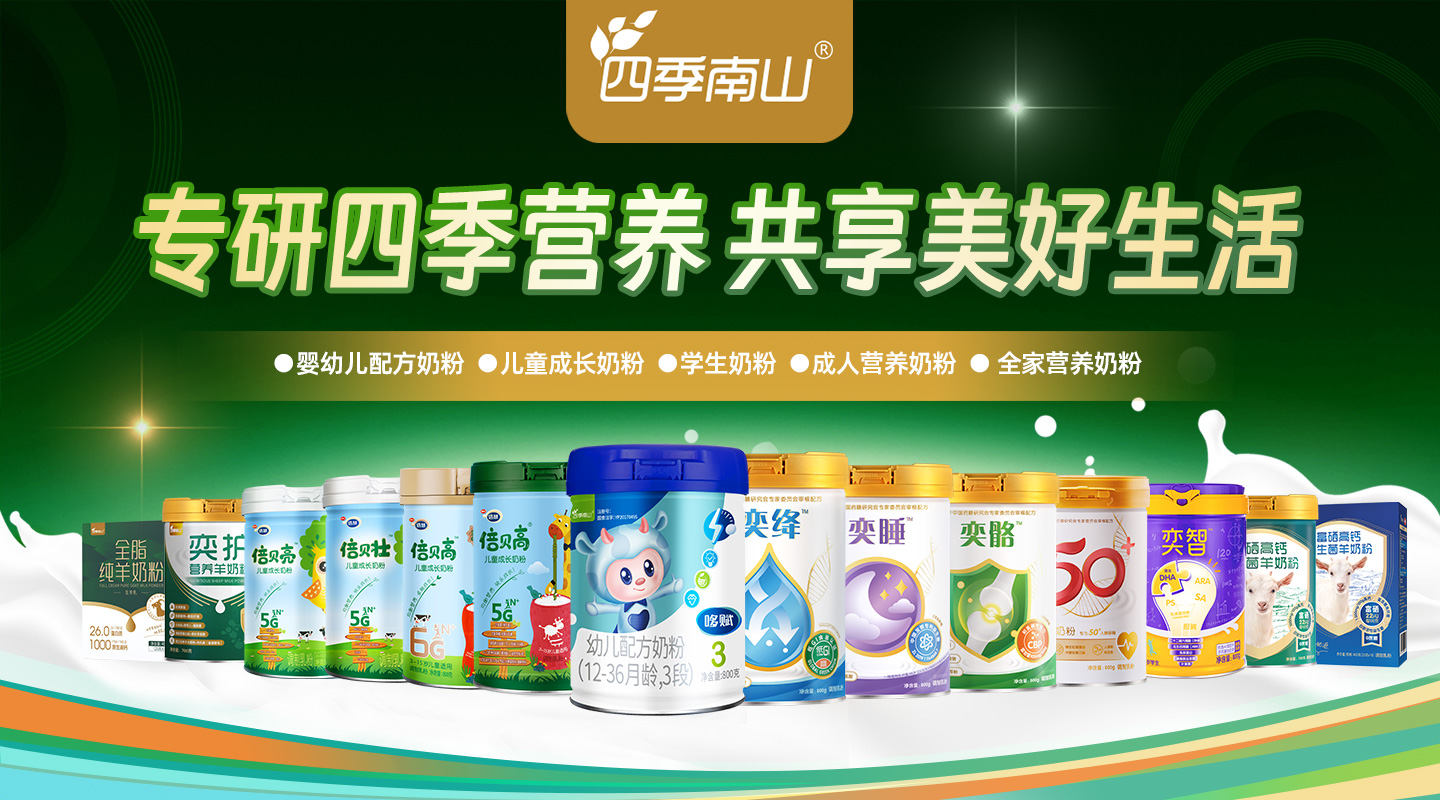 四季南山是一家集科研、生產(chǎn)、銷售、服務(wù)于一體,專注于全生命周期營(yíng)養(yǎng)食品的集團(tuán)化公司。目前運(yùn)營(yíng)四季南山、哆賦、領(lǐng)賦羊、倍慧、倍貝高、奕睡、南山等多個(gè)品牌,產(chǎn)品涉及嬰幼兒奶粉、兒童奶粉、學(xué)生奶粉、成人奶粉、純羊奶粉、中老年功能奶粉、全家奶粉等,為0-100歲全生命周期提供定制營(yíng)養(yǎng),致力打造守護(hù)國(guó)民健康的高端營(yíng)養(yǎng)品新標(biāo)桿。