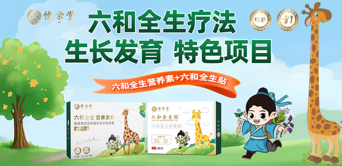 品牌名稱:六和全生 主營產(chǎn)品:六和全生療法,六和全生貼,六和全生營養(yǎng)素 品牌特色:綠色療法助發(fā)育 特膳營養(yǎng)促生長