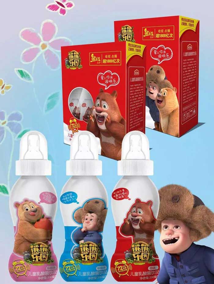 品牌名稱:熊出沒 主營產(chǎn)品:熊出沒兒童乳酸菌飲品 品牌特色:7種乳酸菌,舒緩腸胃