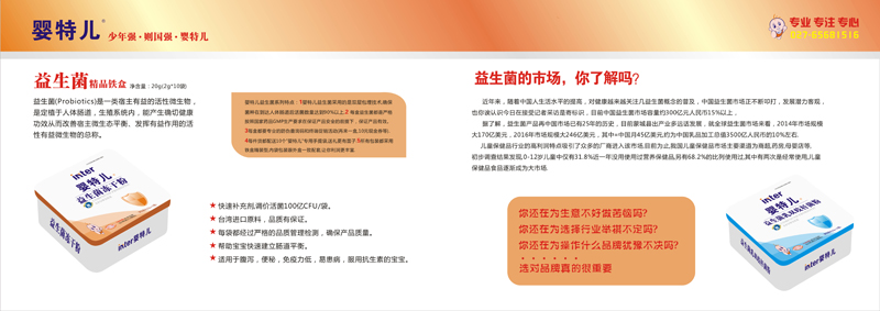 “嬰特兒”就是湖北英賽特醫(yī)藥科技有限公司旗下主打的嬰幼兒營養(yǎng)品品牌,它涵蓋了寶寶成長所需的多種營養(yǎng)品及輔食,如寶寶們輔食階段必備的嬰幼兒米粉系列,可以有效預(yù)防并緩解寶寶上火的清清寶系列,更有呵護寶寶腸道健康的益生菌系列以及助力寶寶健康成長的蛋白粉以及凝膠糖果系列。多系列多產(chǎn)品的研發(fā)和涉足,只是為了讓每一個寶寶都能擁有健康好身體,讓為人父母者更放心更安心,這就是嬰特兒品牌的初衷和美好心愿。
