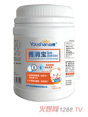幼善植物固體飲料,有善消寶、善清寶、善啤寶、金膳通、蒲公英甘草五大配方單品,傳承經(jīng)典草本配方,科學配比,均衡營養(yǎng)。幼善植物固體飲料易溶解,易沖調(diào),口感酸甜,小朋友們喜歡,家長更放心。