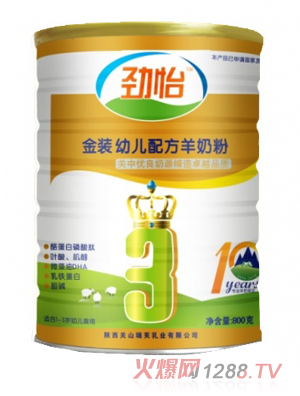 勁怡金裝較大嬰兒配方羊奶粉以莎能羊新鮮乳汁為主要原料,經(jīng)高科技脫膻處理加工而成。同時(shí)根據(jù)6-12月齡嬰兒身體 發(fā)育和營(yíng)養(yǎng)需求變化,科學(xué)添加免疫球蛋白(IgG)、花生四烯酸 (AA)、二十二碳六烯酸(DHA)等對(duì)嬰兒生長(zhǎng)發(fā)育有重要意義的營(yíng)養(yǎng)物質(zhì),是nearto母乳的優(yōu)質(zhì)營(yíng)養(yǎng)食品。