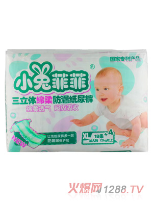 現(xiàn)代醫(yī)學表明,誘發(fā)尿布疹的病因并非由尿布中的尿和便便中的氨所導致,而是孩子在大小便之后,尿液或者便便沒有被及時的處理掉,小屁屁變得太過濕潤,而皮膚表層的一層酸性保護膜被破壞掉而引起的。小兔菲菲嬰兒紙尿片則可完全避免此類情況的出現(xiàn),帶給bao--bao肌膚時刻的舒適干爽。