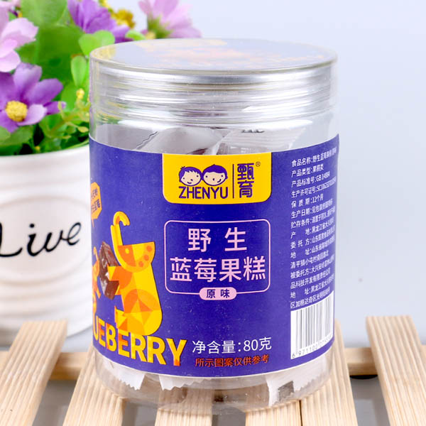 甄育野生藍(lán)莓果糕黑木耳味藍(lán)莓果糕原味兒童小零食80g代理產(chǎn)品展示
