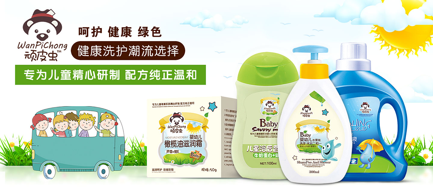 “頑皮蟲”嬰幼兒洗護用品,旗下主營嬰幼兒洗發(fā)露、沐浴露、洗衣皂、洗手液、驅(qū)蚊產(chǎn)品以及潤膚露等產(chǎn)品,呵護寶寶皮膚健康成長,公司產(chǎn)品尋求更放心,只為讓媽媽安心守護!給寶寶提供無盡的關(guān)愛!