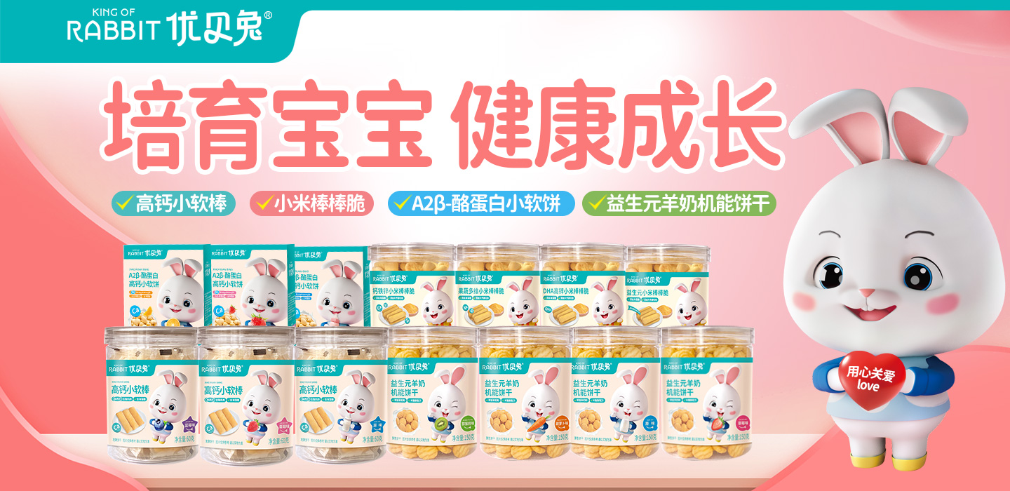 優(yōu)貝兔品牌,主營產(chǎn)品有梨汁米餅、米乳球、泡芙條、益生元羊奶機能餅干、益生元羊奶溶豆等多個系列產(chǎn)品,均采用優(yōu)質(zhì)原材料,經(jīng)過先進的生產(chǎn)工藝制作而成,安全健康,營養(yǎng)美味。