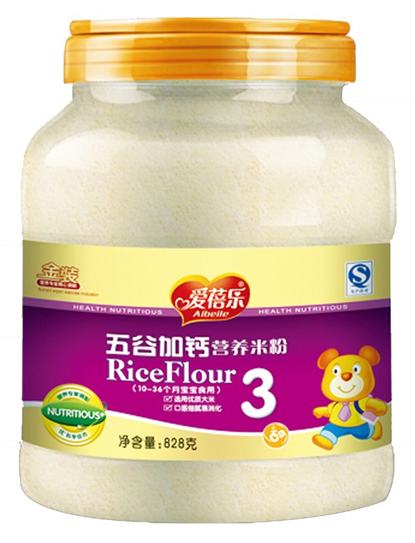 愛蓓樂金裝828克五谷加鈣營養(yǎng)米粉產品展示