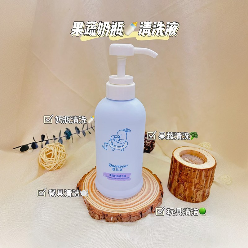 達兒文果蔬奶瓶清洗液,食品級配方,只去污,不殘留。多效清潔,溫和潔凈,植物萃取。