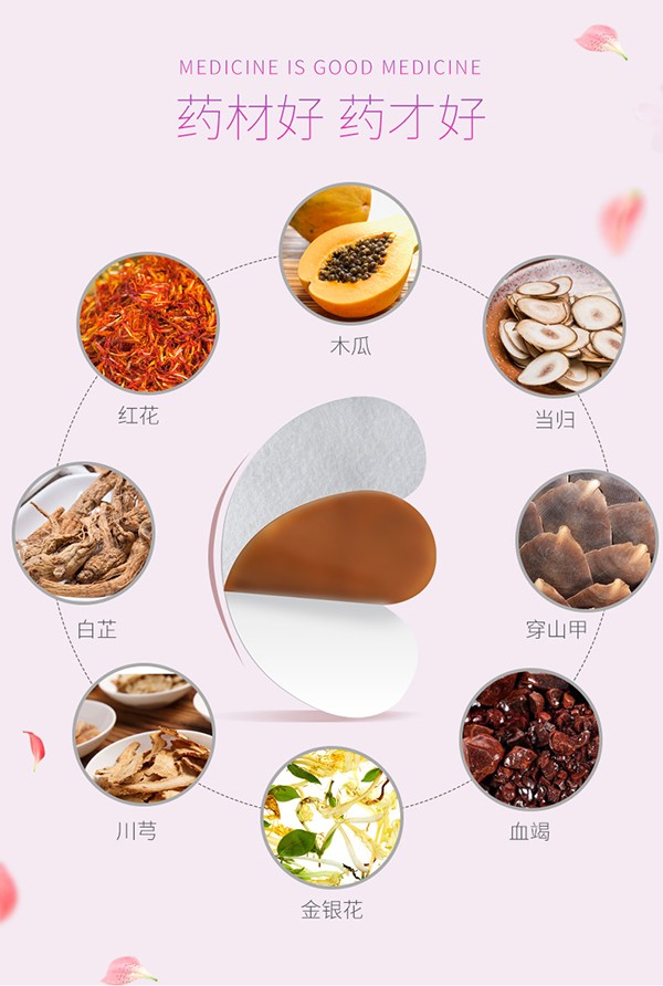 植物提取,如野葛根、了哥王根、王不留行、穿山甲、蒲公英根、苦杏仁、通草、白芍等;冷凝膠無毒、無芳香,通透吸收。