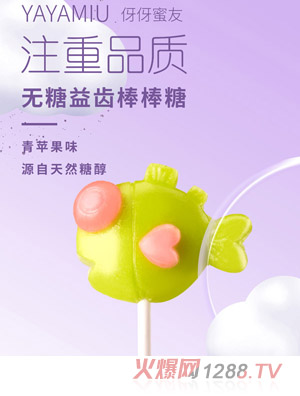 伢伢蜜友作為山東嘉一食品有限公司旗下品牌,主營(yíng)產(chǎn)品為兒童無(wú)糖棒棒糖OEM代加工,旗下?lián)碛卸喾N造型、多種不同的水果口味的棒棒糖產(chǎn)品,添加多種糖醇,無(wú)糖益齒配方,更加安全健康,備受小朋友們的喜愛(ài)。