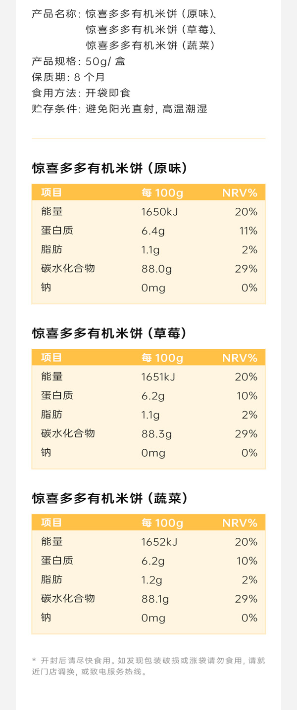 藍貝多多驚喜多多有機米餅,國家有機認證,95%有機大米,拒絕多余添加,濃縮梨清汁,清甜梨汁不上火,寶寶愛吃無負擔,純凈配方,溫和磨牙,收斂口水,口感松脆,好吞咽。