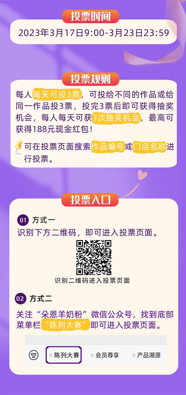 朵恩百佳創(chuàng)意陳列大獎(jiǎng)賽開始投票啦!參與投票贏最高188元現(xiàn)金紅包!
