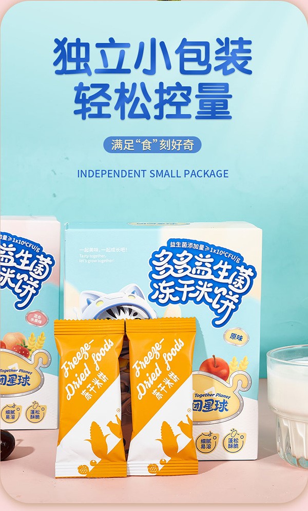 在新時代消費(fèi)群體的健康理念下,90后00后的家長們更加注重寶寶入口零食的健康。對此團(tuán)團(tuán)星球兒童零食,一直專注于兒童入口的嬰童零輔食的健康與營養(yǎng),深入研究,注重生產(chǎn)的每一個細(xì)節(jié),用上乘的品質(zhì)征服了眾多消費(fèi)者與經(jīng)銷商的心。這款團(tuán)團(tuán)星球多多益生菌凍干米餅-原味產(chǎn)品更是深受消費(fèi)者的喜愛。