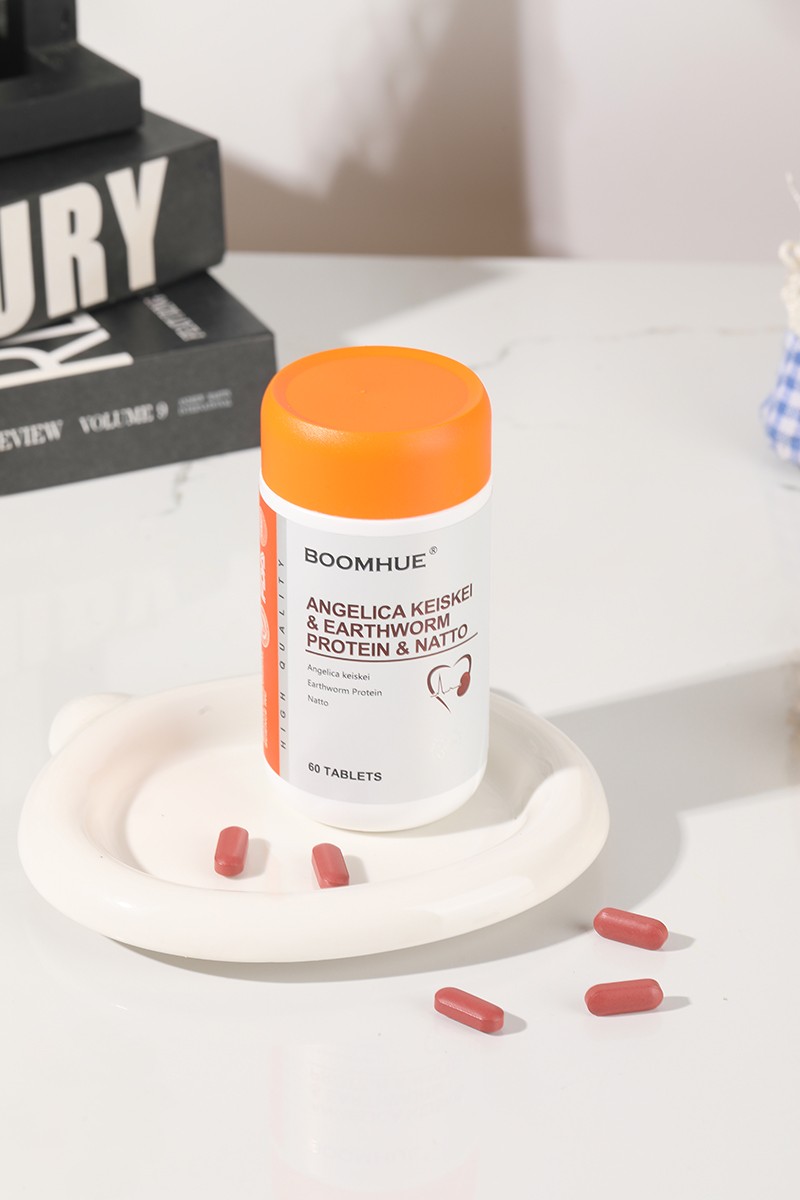 配料:山梨糖醇、明日葉20.25%、紅曲米、納豆12.5%、玉米淀粉、甜菜堿(天然提取)、地龍蛋白1.25%、微晶纖維素。