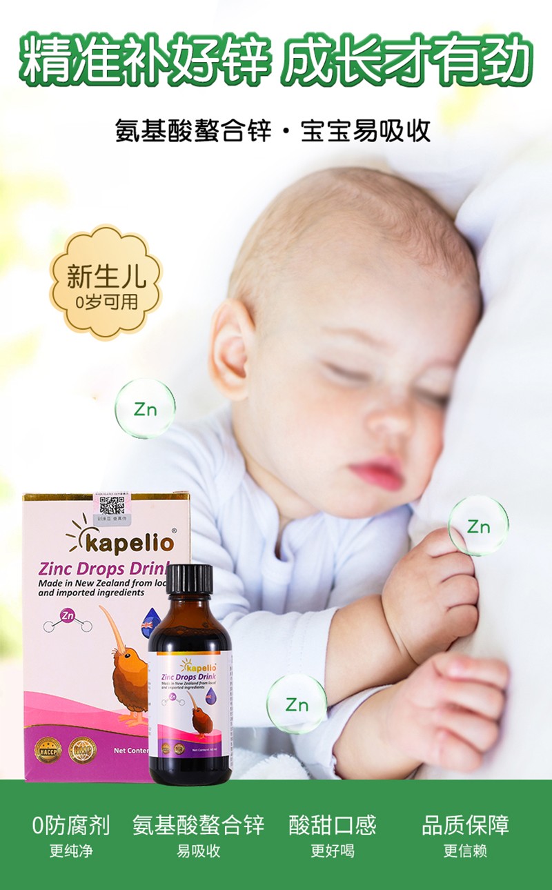 產(chǎn)品特點:KAPELIO凱普諾氨基螫合鋅滴劑采用天然牡蠣來源,將1個鋅原子嵌合在2個氨基酸分子中間,形成穩(wěn)定的螯合結(jié)構(gòu),確?梢酝ㄟ^氨基酸通道把鋅直接運到血液中,吸收率高達95%以上,高于其他鋅劑。