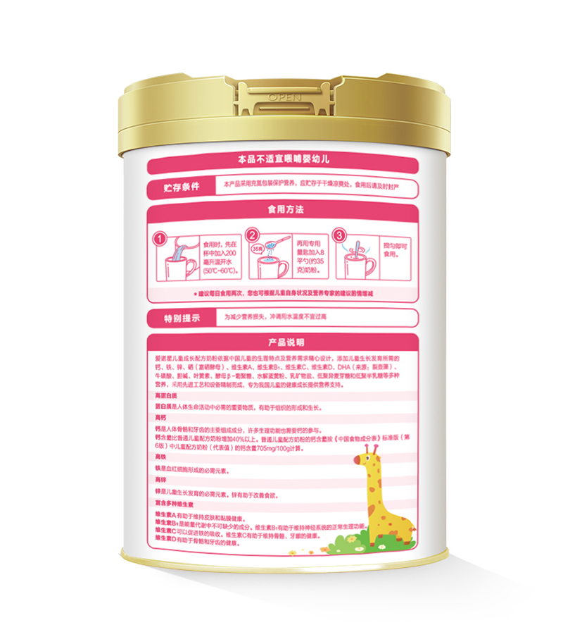三元愛諾星兒童成長奶粉,以“四維呵護(hù)力”為核心,從吸收、長高、護(hù)眼、免疫力四個(gè)方面,全面關(guān)注兒童的成長需求。產(chǎn)品特別添加了部分優(yōu)質(zhì)水解乳清蛋白,易于吸收,助力兒童健康成長。同時(shí),高含量水解蛋黃粉和乳礦物鹽的雙重長高因子,為兒童的骨骼發(fā)育提供堅(jiān)實(shí)支持。藻油DHA、膽堿、;撬峒案吆咳~黃素的添加,呵護(hù)兒童視力健康。此外,酵母β-葡聚糖的加入,進(jìn)一步加持免疫力。